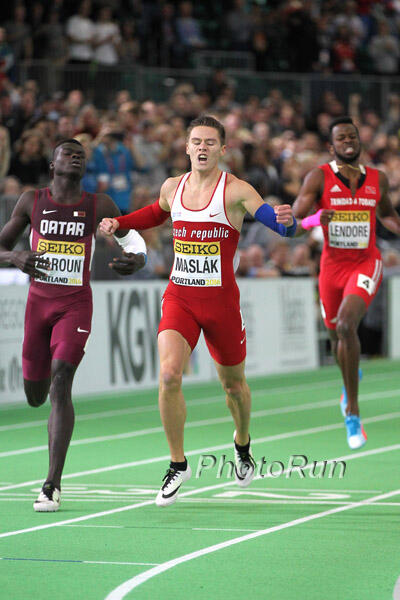 Pavel Maslak became the first European man to successfully defend the 400m at world indoor championships with a performance where for once he did not dominate.