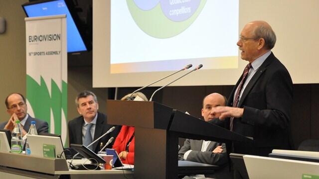 European Athletics President Hansjörg Wirz gave a keynote speech at the Eurovision Sports Assembly in Geneva on Thursday. ©EAA - European Athletics