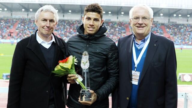 European Athletics President Svein Arne Hansen and Council member Libor Varhanik (left) with Brazilian pole vaulter Thiago Braz (middle) during the Ostrava Golden Spike meeting on Wednesday 26 May. ©European Athletics - EA