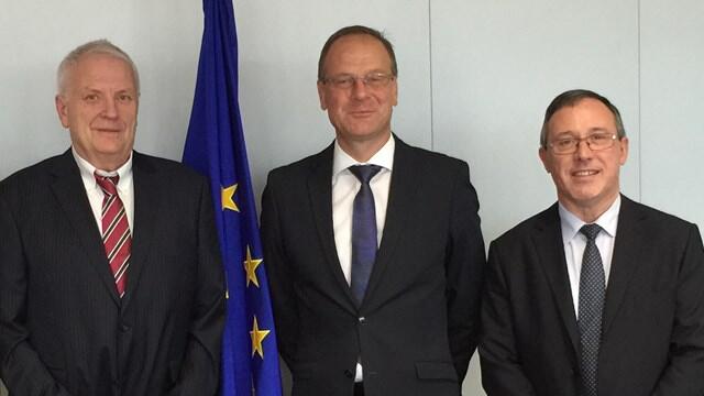 European Athletics President, Svein Arne Hansen, with the European Commissioner for Education, Culture, Youth and Sport, Tibor Navracsics, and European Athletics Vice President, Jean Gracia, in Brussels on Tuesday. ©European Athletics - EA