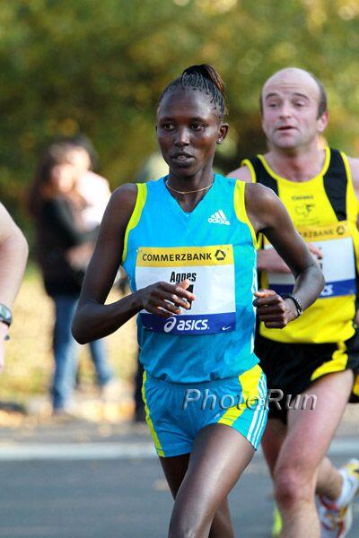 With Kenya's Agnes Kiprop a former Frankfurt champion returns to the race through Germany's financial capital. Actually it will be the third time in a row that Agnes Kiprop will run here. In 2009 she won the race with 2:26:57 and a year ago she improved her personal best to 2:24:07, when finishing third in Frankfurt. The Kenyan showed another fine performance this spring, when she positioned second in the Paris Marathon with 2:24:43. Agnes Kiprop will surely be in contention for victory and could try to break 2:24 for the first time.