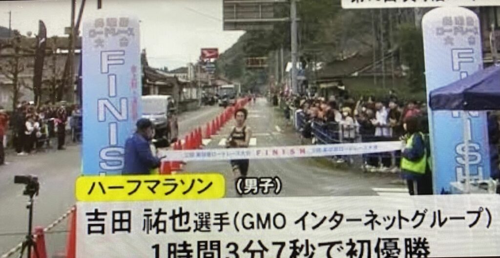 In a bit of synchronicity, 2020 Fukuoka winner Yuya Yoshida ran the fastest time of the weekend on home soil, outrunning GMO teammate Yuta Shimoda by 16 seconds to win Kumamoto’s Okukuma Half Marathon in 1:03:07. Kazuto Kawabata (SGH) was 3rd in 1:03:26 as the only other runner to clear 64 minutes.