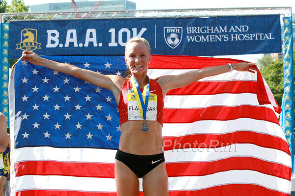 Flanagan, hailing from nearby Marblehead, Mass., was poised to become the first American ever to win the B.A.A. 10K, presented by Brigham and Women's Hospital. Training with Olympic teammate Amy Cragg, the pair took off from the start determined to finish on the podium.