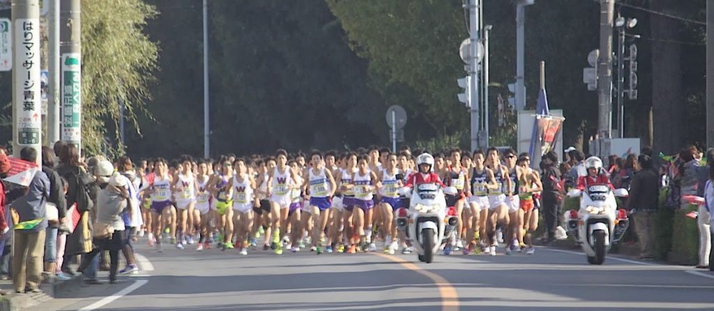 Skimming right around 3:00 min/km pace, a lead pack of around seventy hit halfway in 31:34, on track for a 1:03:08 finish time, without any clear leaders. Koki Takada (Waseda Univ.), Keigo Yano (Nittai Univ.), Takayuki Maeno (Meiji Univ.), Ikuto Yufu (Komazawa Univ.), Norimasa Imai (Toyo Univ.), Duncan Muthee (Takushoku Univ.) and others took turns in the three to five-wide front line but none exerted true pressure until Imai began to push after the halfway mark.