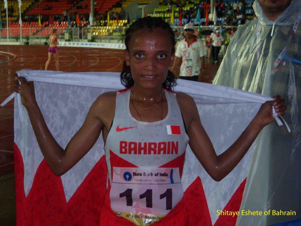 All the five finals went through rain and the day witnessed a new championship record by Bahrain’s defending champion Shitaye Eshete Habtegebrel in the women’s 10000m. Japan’s Ayumi Hagiwara did the front running in the race with Eshete and Alia Saeed of United Arab Emirates hanging on with her on the lead bunch. Both Saeed and Eshete were trying to increase the tempo yet Hagiwara remain on the lead till midway.