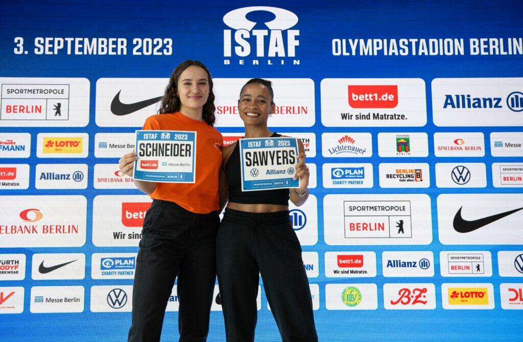 Germany’s sprint hurdler Rosina Schneider and British long jumper Jazmin Sawyers at Friday’s press conference. - Photo: Camera4/ISTAF Foto: Annegret Hilse/camera4