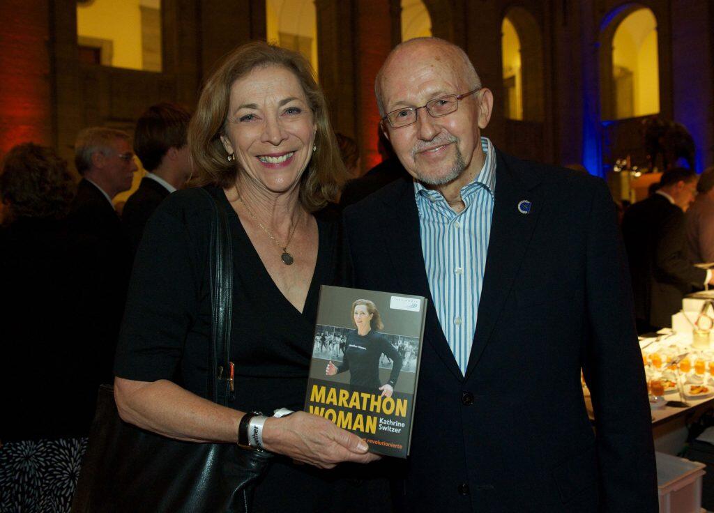 BMW Berlin Marathon 23.09.2011 scc events GET TOGETHER Baerensaal im Alten Stadthaus vlnr Marathon-Pionierin Kathrine SWITZER USA als erste Frau lief sie unter Protesten den Boston Marathon 1967_ Horst MILDE GER Vater des Berlin Marathons Foto Camera 4
