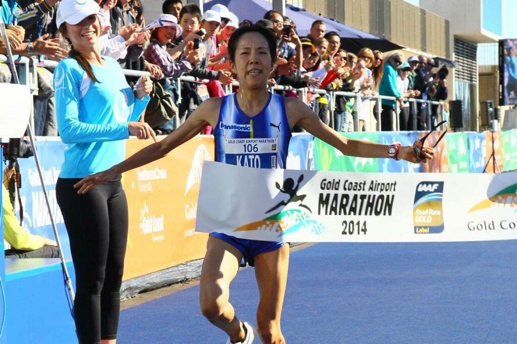 2014 Gold Coast Airport Marathon winner Asami Kato (Team Panasonic) topped what may have been the deepest women's half marathon ever run on Japanese soil, running 1:10:36 to win the last big race of the Japanese season, the 36th running of the Matsue Ladies' Half Marathon. ©Helmut Winter/Gold Coast Organisers