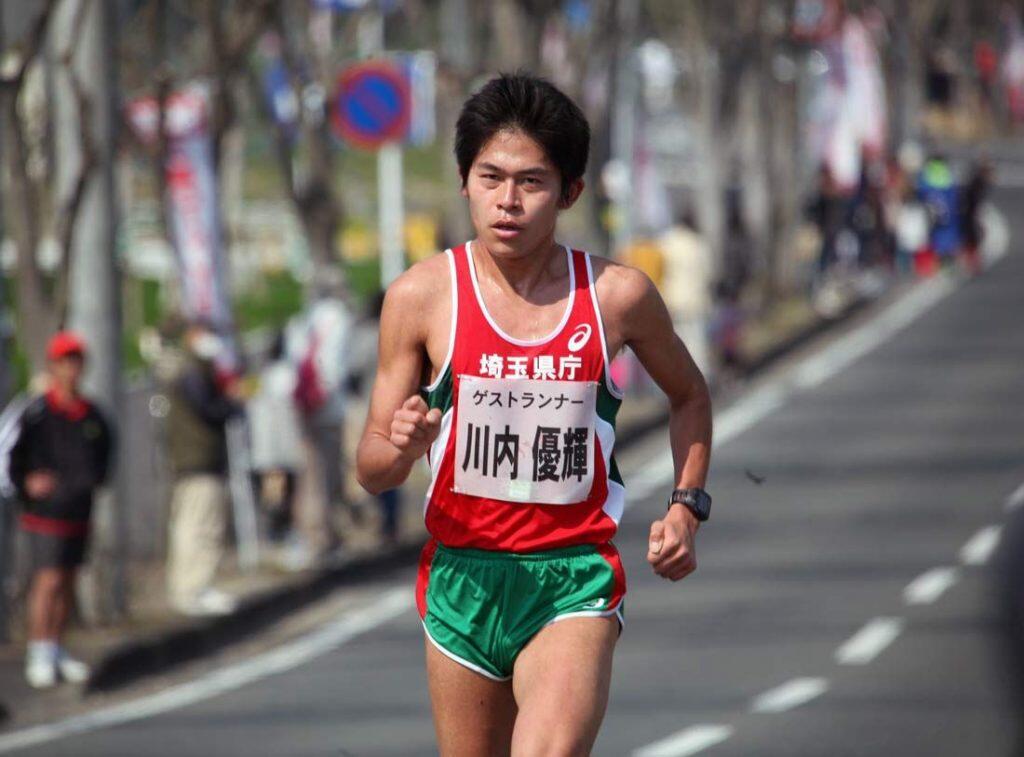 The civil servant runner Yuki Kawauchi (27, Saitama Pref. Gov't) won today's 30th anniversary Naha Marathon in a course record 2:13:43. His time took 9:26 off the existing course record and he was more than ten minutes ahead of the 2nd-place finisher.