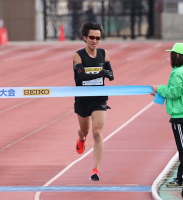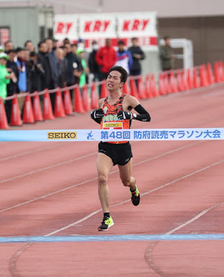 Hamasaki gutted out the final kilometers alone and was rewarded with a 2:11:26 PB, his first time clearing IAAF silver label status. Maybe the biggest surprise of the day wasn't far behind him. With Isshiki expected to take 3rd, crowds at the stadium were surprised to see 28-year-old amateur club runner Asuka Tanaka (Yutori Running Club) hit the track after Hamasaki. Tanaka debuted at February's Nobeoka Nishi Nippon Marathon in 2:20:44, going on to win November's mass-participation Fukuoka Marathon in 2:20:05. Here he dropped an almost 8-minute PB of 2:12:17 for 3rd, easily jumping to the top tier of non-corporate league runners in Japan.