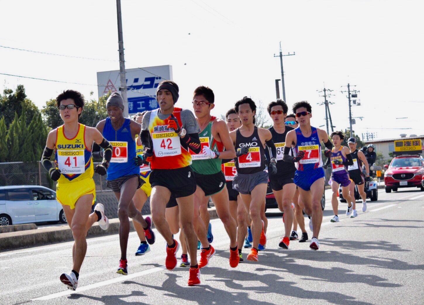 Pacers Taiga Ito and Melaku Abera, both of whom ran Fukuoka alongside Kawauchi, were tasked with taking the field out in 3:06/km, 2:10:48 pace. Pre-race Kawauchi told JRN, "If they'd run 3:04 I ccoul definitely, 100%, go faster than I did in Fukuoka. In cold and windy conditions things went in his favor in the early going with 5 and 10 km splits of 15:19 and 30:44. Uncharacteristically wearing sunglasses, Kawauchi was right on the pacers the whole way. On his shoulders, fellow civil servant runner Tatsunori Hamasaki (Nanjo City Hall) with a 2:12:12 best from his earlier career in the corporate leagues, and Tadashi Isshiki (GMO), a former National University Half Marathon champion who debuted in 2:11:45 his junior year at three-time Hakone Ekiden champ Aoyama Gakuin University.