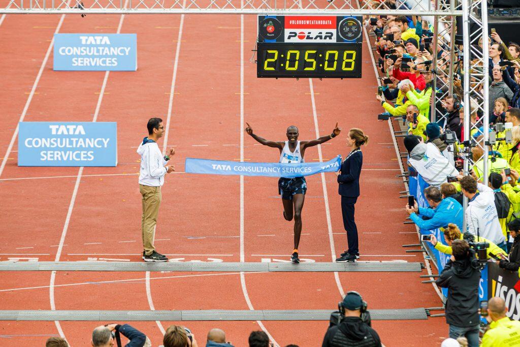 Vincent Kipchumba won today’s TCS Amsterdam Marathon in 2:05:09. The 29-year-old Kenyan was the first to enter the Olympic Stadium, where a powerful final sprint resulted in a dramatic and exciting win. 20-year-old Degitu Azimeraw smashed the women’s course record, finishing in a sensational 2:19:26. Abdi Nageeye took the national title in 2:07:39.