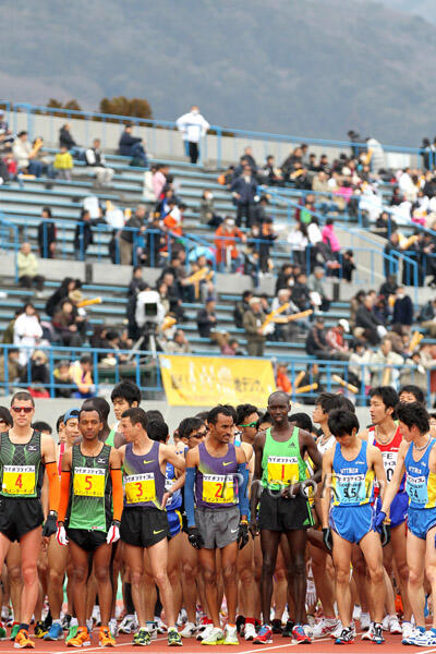 The holder of those records, 2010 Tokyo Marathon winner Masakazu Fujiwara (Team Honda), is also on the entry list along with plenty of 2:09 men, 61-minute half marathoners and aging stars, making Lake Biwa the strongest of the 2012-13 domestic Japanese fields and its outcome unpredictable. Click here for a detailed field listing, and click here for details on watching NHK's live commercial-free broadcast. JRN will cover the race live via Twitter starting at noon Japan time.