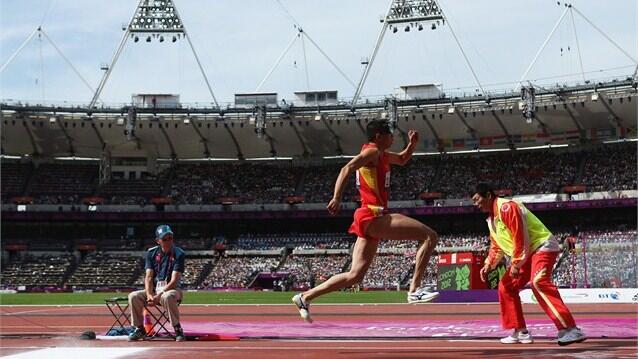 Li Duan of China competes in the men's Triple Jump - F11 final on Day 8 of the London 2012 Paralympic Games at the Olympic Stadium. ©LONDON 2012