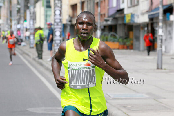 Prize money shown in US Dollars1. Geoffrey Kipsang KEN 63:18 $15,0002. Dickson Chumba KEN 64:10 7,5003. Kimutai Kiplimo KEN 64:27 5,0004. Nguse Amlossom ERI 64:37 3,0005. Geoffrey Bundi KEN 65:27 2,0006. Raul Pacheco PER 65:37 1,5007. Samson Gebreyohannes ERI 66:42 1,2508. Sylas Kimutai Chebogel KEN 66:48 1,0009. Paulino Canchanya PER 67:59 75010. Jeffrey Eggleston USA 68:21 5001. Rita Jeptoo KEN 73:39 15,0002. Mare Dibaba ETH 75:34 7,5003. Gelete Burka ETH 75:38 5,0004. Aziza Aliyu ETH 76:41 3,0005. Gladys Cherono KEN 77:44 2,0006. Nazret Weldu ERI 78:29 1,5007. Karina Villazana PER 79:14 1,2508. Carolina Tabares COL 81:12 1,0009. Angela Figueroa COL 81:43 75010. Martha Roncero COL 84:14 500