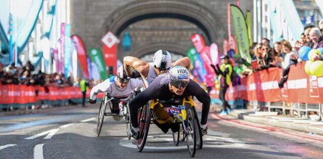 It is a familiar sight in London to have a pack of wheelchair racers turn into The Mall together and this year was no different with eight making it a tactical race from Tower Bridge.