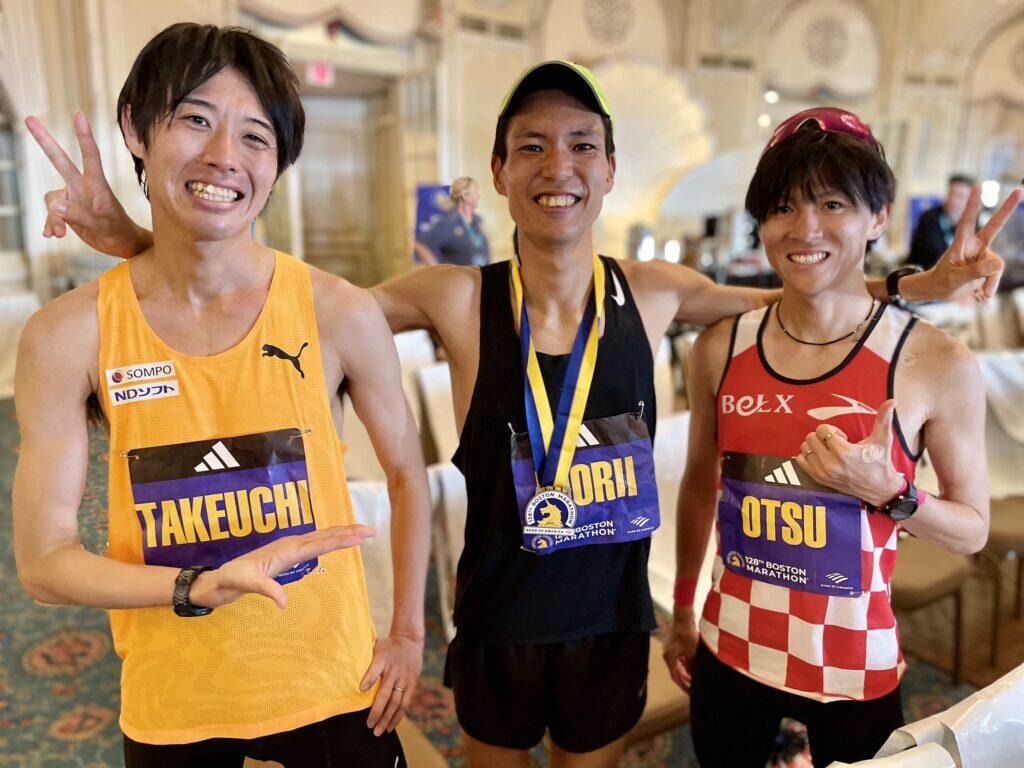 Osako finished 13th in 2:11:44, the 7th-fastest Japanese time in Boston, Takeuchi 22nd in 2:16:43 and Otsu 2:17:57 in 25th. Takeuchi suffered cramping in his left calf and right thigh during the hills and dropped off Morii and Osako’s pace. Otsu felt the pace was too fast too early and backed off to try to keep it conservative in hopes of catching back up when people started fading, but ended up struggling to deal with the downhill aspect of the course. „I was catching people on the flats and uphills, but I had a really hard time with the downhills,“ he said post-race. „It was a really hard course.“