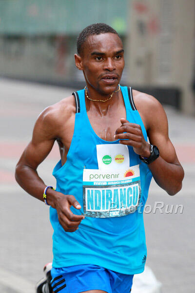 A world record-pace 2:46 opening km shook off most of the Japanese competition, quickly leaving the Kenyan quartet of Ndirangu, Paul Kuira (Team Konica Minolta), Muthoni Muiru (Soka Univ.) and Joseph Onsarigo (Team Nasu Kensetsu) up front tailed by newlywed Takuya Noguchi (Team Konica Minolta). In the chase pack, defending champ Masato Imai (Team Toyota Kyushu) and two members of Japan's London World Championships marathon squad, Kentaro Nakamoto (Team Yasukawa Denki) and Yuki Kawauchi (Saitama Pref. Gov't).