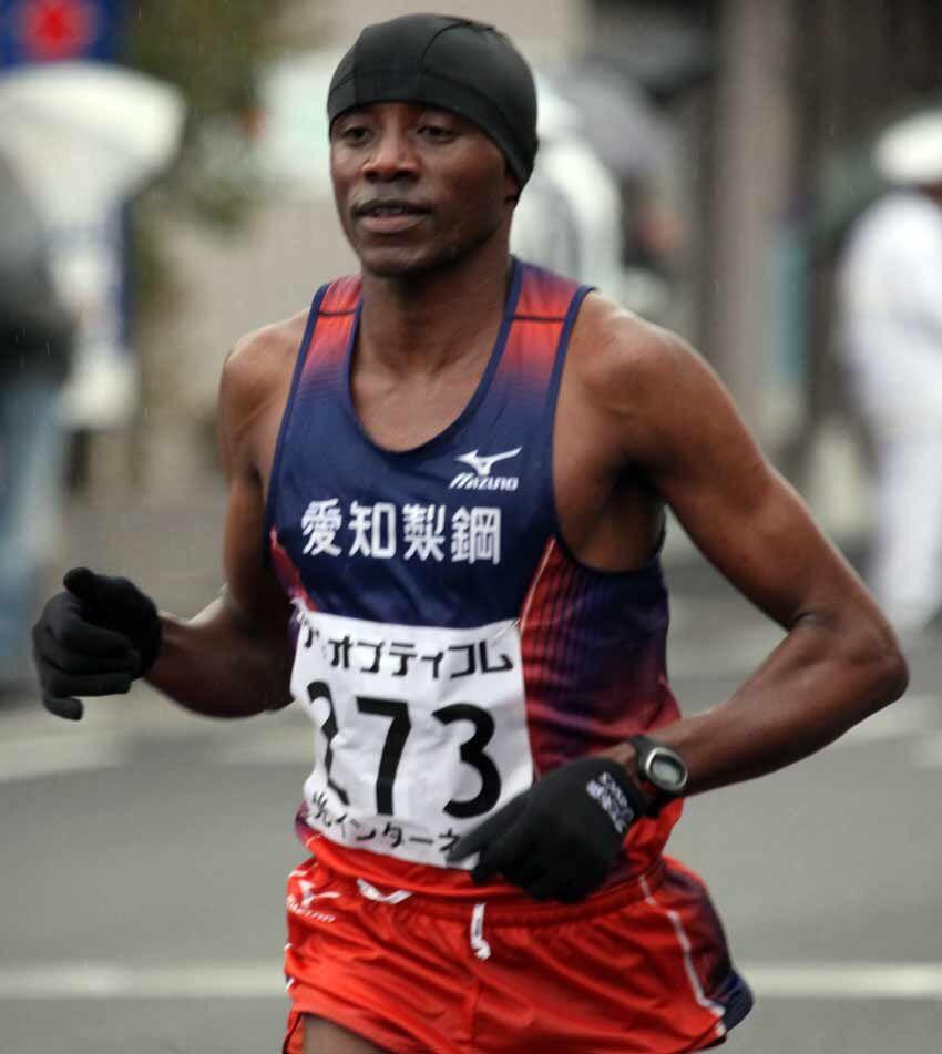 Having left Japan's corporate team system, 2012 Lake Biwa Mainichi Marathon winner Samuel Ndungu (Kenya) was back to take the top spot again in Biwako's cold and rainy 70th edition. ©Helmut Winter