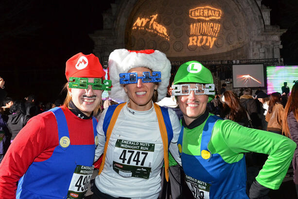 The festivities will kick off at 10:00 p.m. with a dance party featuring a DJ and live performers. The costume contest will begin at 11:00 p.m. with the top three places (and prizes) going to the individual runner or group of runners who dress in the “nuttiest” attire. Runners and spectators can take their commemorative photos, complete with New Year’s party favors, at the red-carpet photo tent in the festival area. At the stroke of midnight, runners will take off on a four-mile loop through Central Park while the night sky sparkles with a 15-minute fireworks show—and the celebration wouldn’t be complete without a sparkling cider toast near mile two!