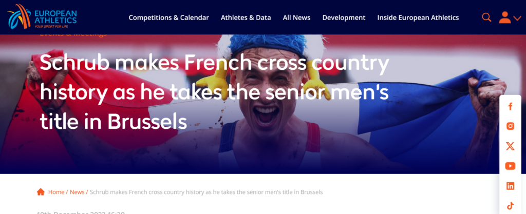 If the volume of support is a key factor in propelling an athlete onto further success, then newly crowned SPAR European Cross Country Championships senior men’s champion Yann Schrub is in for a memorable 12 months.