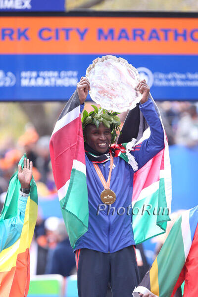 A win for Jeptoo in New York this year would make her the seventh woman ever to win two consecutive years in a row (event record-holder Margaret Okayo won the race in 2001 and 2003). Nine-time champion Grete Waitz and three-time champion Paula Radcliffe are the only women to have won more than two titles.