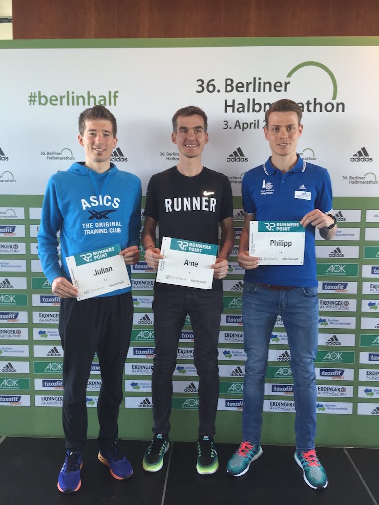 As well as Arne Gabius two other German men running on Sunday have achieved the German Olympic qualifying standard for the marathon last year. Berlins Race Director Mark Milde brought together the best Germans runners Philipp Pflieger, Julian Flügel and Gabius, they could all make a major step towards Rio on Sunday, if they run below a very moderate 66:30. This is the time asked by the German federation to confirm their form during the spring of the Olympic year.