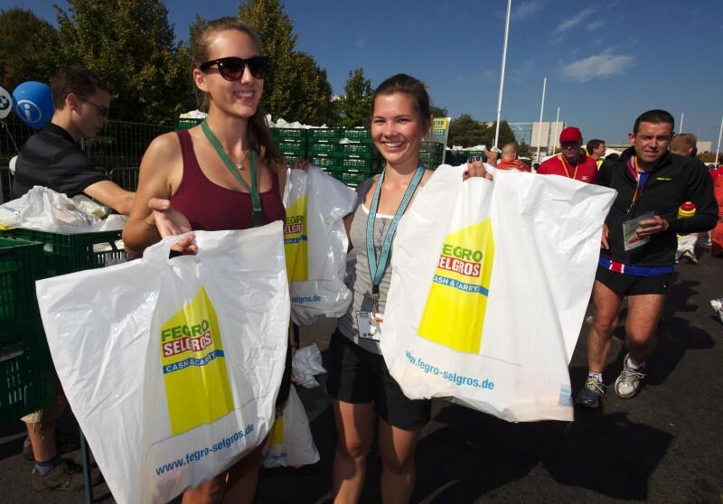 What has a TetraPack of water, an apple, a banana, cookies, a chocolate roll and a PowerBar bar in common? Right. Not many people know, that the finisher in the finish area do not only receive their medals, but also a supply bag with lots of vitamins and carbohydrates to refill their carbo store after the marathon.