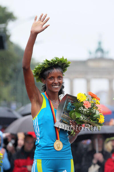 Berlin, Thursday, September 27, 1400gmt – When Aberu Kebede woke up this morning, and saw the rain sheeting down on a sombre Berlin, she must have though that she was in for a re-run of the marathon two years ago, remembered locally as ‘the rainy race’. But since she won that one by over a minute, in 2.23.58, a shower or two for Sunday morning’s 39th Berlin Marathon might have seemed like a good idea.