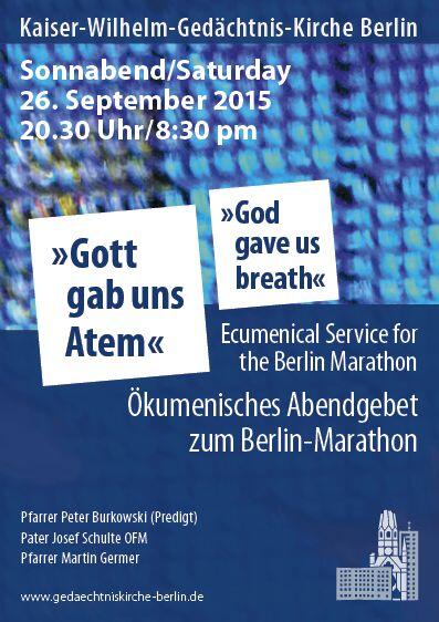 RUNNING GERMANY: BERLIN – TODAY: Ecumenical Service at the Kaiser Wilhelm Memorial Church on September 26, 2015, 8:30 pm – God gave us breath – an evening prayer for the Berlin Marathon