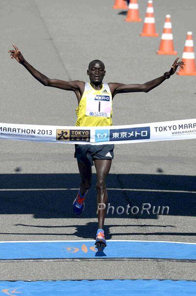 In the following year (2012) he won the RAK Half Marathon (United Arab Emirates) and the BERLIN HALF MARATHON. A few weeks after his Berlin win he ran a world record for 25 k (1:11:18), again in Berlin bettering the mark held by Sammy Kosgei (Kenya) by 32 seconds. In 2013 he won the Tokyo Marathon (2:06:50) and the Bank of America Chicago Marathon (2:03:45), both with course records, the latter being the third fastest time ever run on a legitimate course.