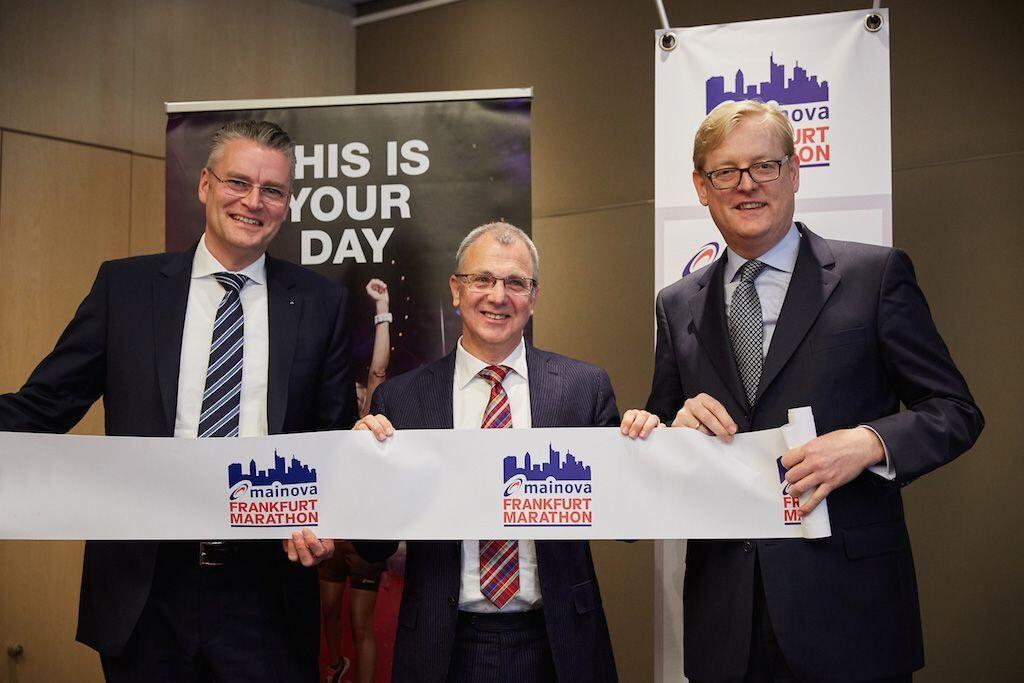Mainova’s chairman Constantin Alsheimer, Race Director Jo Schindler and Head of Sport for the city of Frankfurt Markus Frank (left to right) © Mainova Frankfurt Marathon