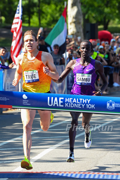 The 2015 UAE Healthy Kidney 10K had two photo finishes, with American Ben True (Enfield, NH) and defending champion Joyce Chepkirui of Kenya claiming victories on Saturday, May 30, in Central Park. ©Victah Sailor