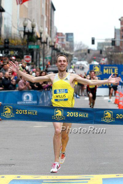 The 30-year-old Willis (right, courtesy Competitive Image), who won his silver medal at the Beijing Games in 2008, blasted away from the field in the late-going, but eased his way to the finish line in the final meters despite the $10,000 record bonus.