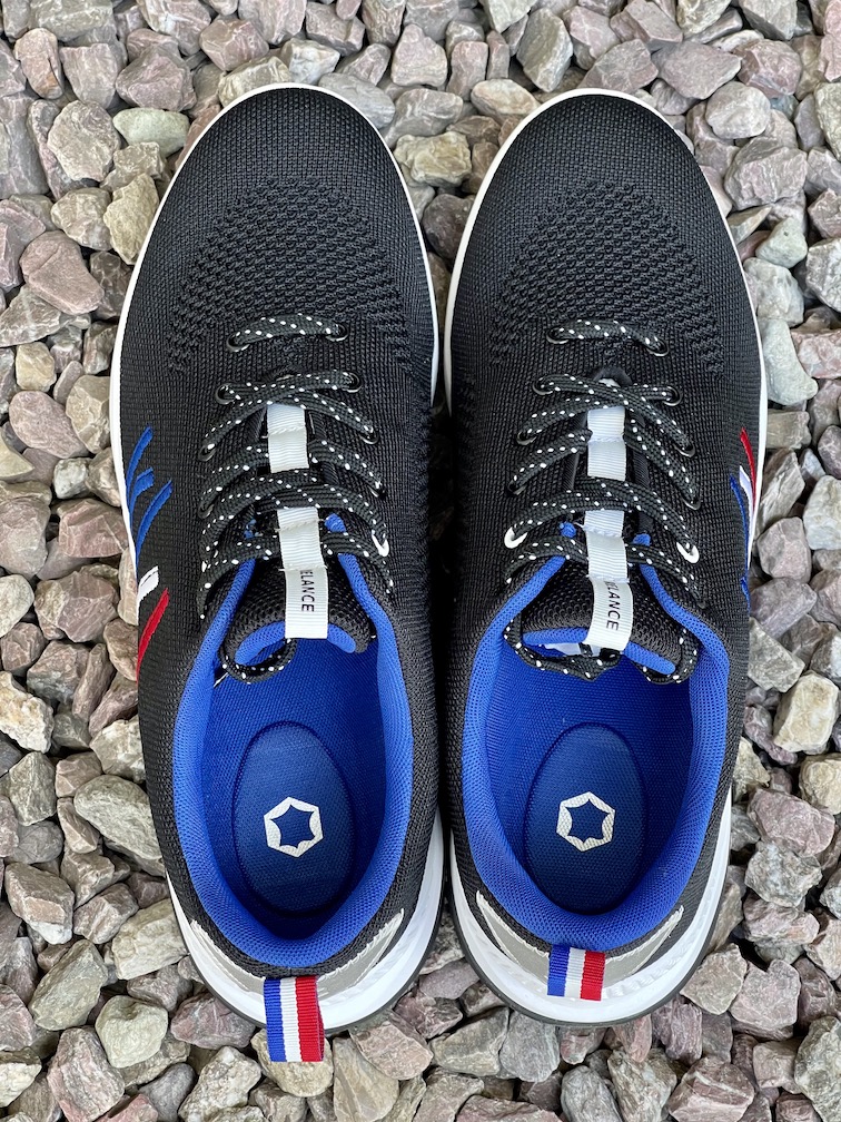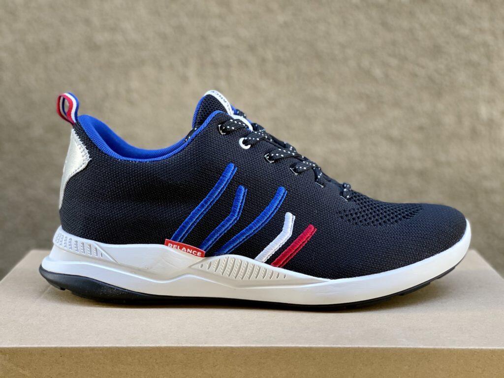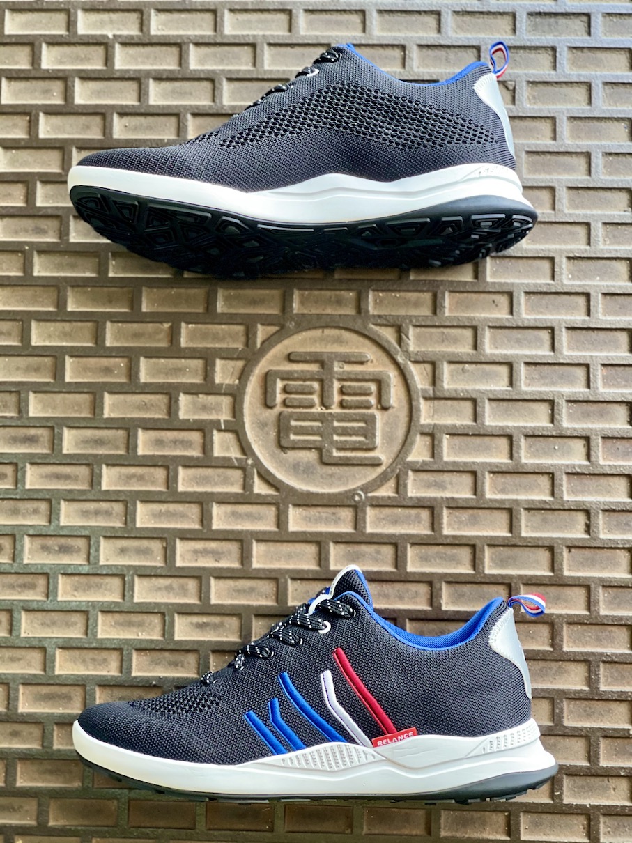 At first glance the RL-01 looks like what it is, a heavy cushioned trainer geared toward fashion-conscious recreational runners. It’s got a lot of nice styling details like a blue-white-red tricolour logo and heel loop, and a single pair of differently-colored eyelets, but weighing in at 330 g it’s definitely on the heavier end of the spectrum. PR materials claimed a 10 mm drop on the shoe, which seemed accurate.