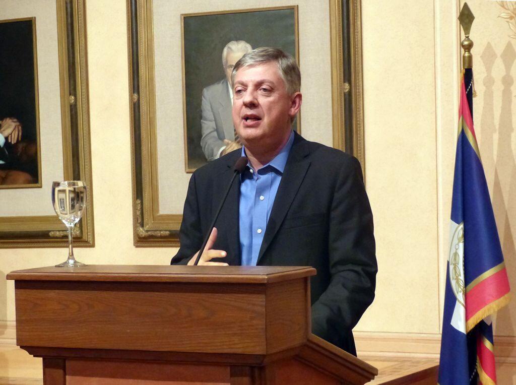 The President of the Greek Athletics Federation (SEGAS) and President of the "Athens Marathon - The Authentic" Kostas Panagopoulos and his speechin the City Hall of Athens ©Horst Milde