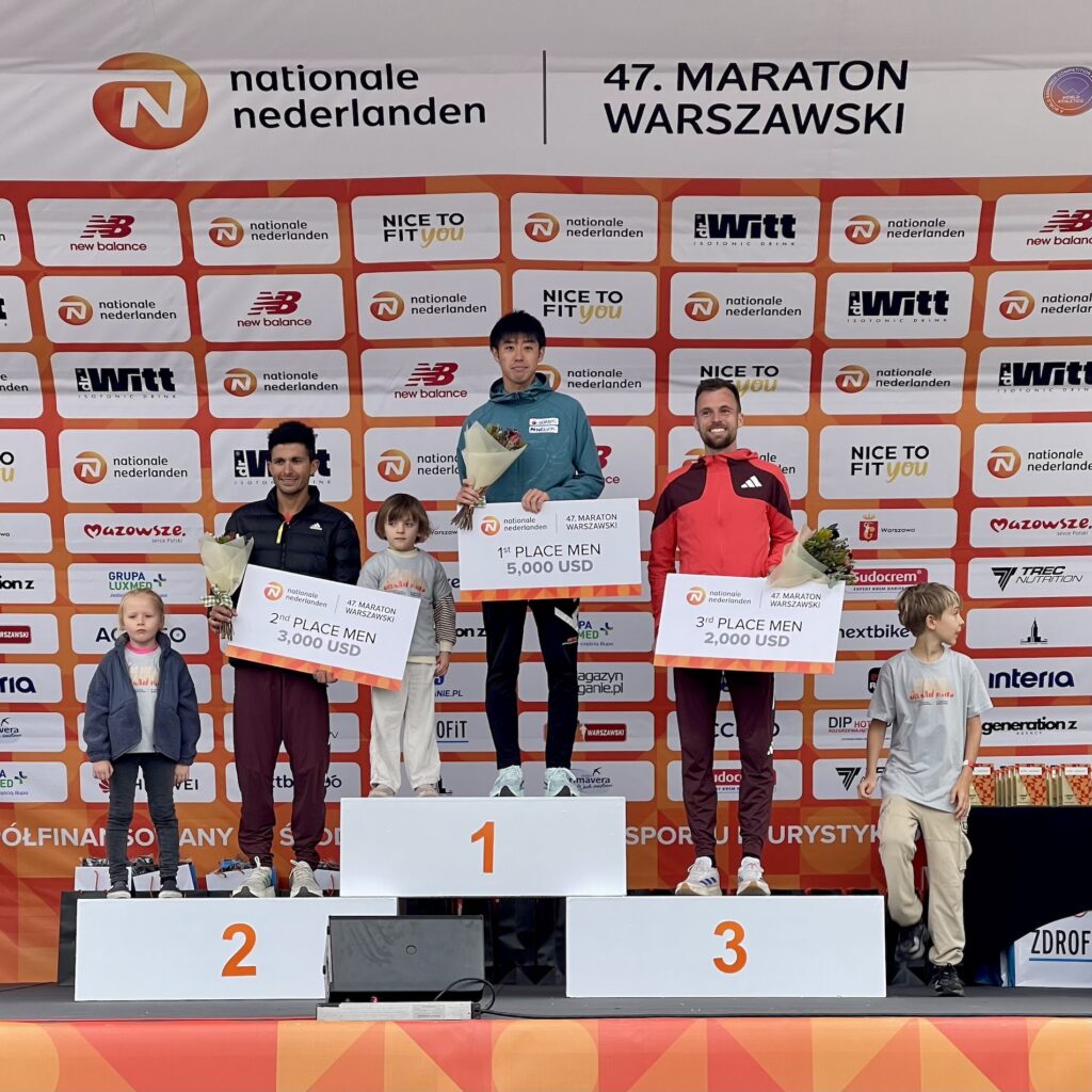 Fresh off great Japanese performances at the Berlin Marathon and good ones in the Muenster Marathon and Tokyo World Championships, Ryoma Takeuchi came to today’s NN Warsaw Marathon to win it.