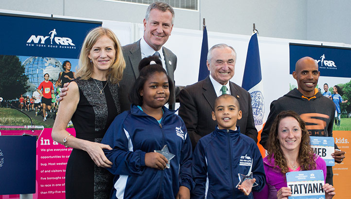 In honoring the next generation of runners and dreamers, Wittenberg and Mayor de Blasio presented Teianna Reed of Archimedes Academy in the Bronx and Miles Bernstein of P.S. 321 in Brooklyn with the first-ever NYRR Youth Running Ambassador of the Year Awards. Both youngsters will participate in the inaugural NBA All-Star Relay in Sunday’s race, running with Mike Breen, the ABC/ESPN and New York Knicks broadcaster, and Brooklyn native Bernard King, respectively.