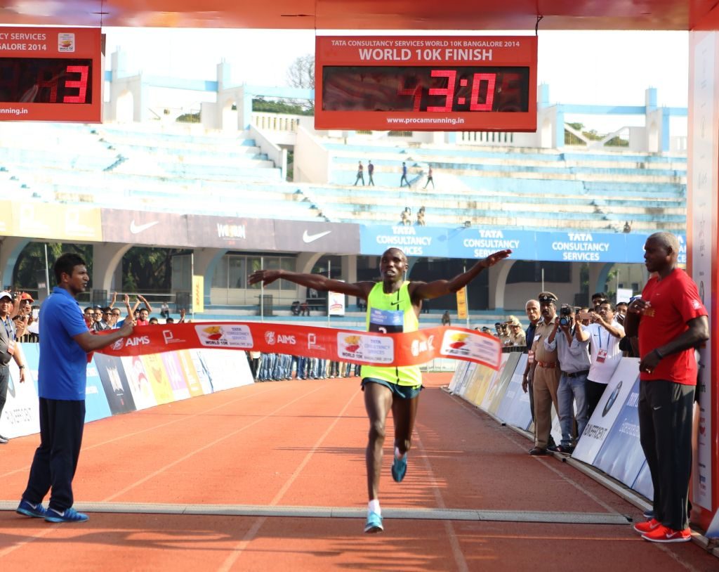 Bengaluru, India – 18 May 2014 – On a day when no one predicted fast timings, Geoffrey Kamworoor-Kipsang obliterated the six-year-old course record with an excellent 27:44 clocking while Lucy Kabuu led a Kenyan podium sweep in the women's race, also with a brilliant new time of 31:48, in the 7th edition of TCS World 10K race at Bangalore.