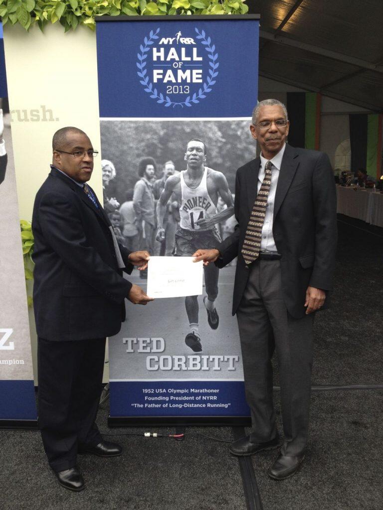 Ted Corbitt was inducted into the New York Road Runners Hall of Fame last year. Gary Corbitt (r.), son of Ted Corbitt - accepting the award on behalf of his father who died in 2007 at age 88. - Photo: ©New York Road Runners