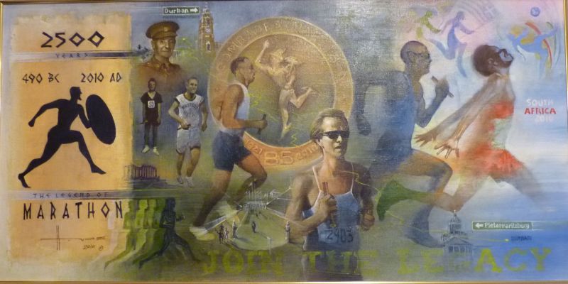 The inscription along the bottom of the canvas reads: “Join The Legacy”, theme of the Comrades Marathon race and Art Competition of the historic 2010 85th running of the world's greatest ultra-marathon.