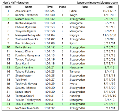 World record-setting depth at the National University Half Marathon Championships, Yosenkai 20 km, Kumamoto Kosa 10-Miler and seemingly everywhere else.