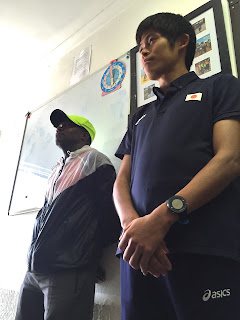 Appearing through the support of Meyer’s Endurocad long distance development program, Thugwane and Kawauchi spoke to the crowd of more than fifty children in the songo.info building. Few realized who Thugwane was when he entered the room, but when Fipaza introduced him and said his name there was a wave of gasps as the children recognized it as that of a legend from a time before they were born. The champion still lingering inside the soft-spoken Thugwane emerged as he delivered an impassioned speech on self-belief and the drive to overcome adversity that led him to become the first black South African Olympic gold medalist.