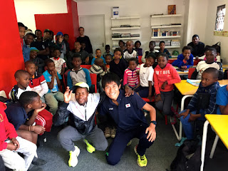 Thugwane and Kawauchi Visit Local Children in South Africa's Kayamandi Township - text and photos by Brett Larner - Japan Running News ©Brett Larner - Japan Running News