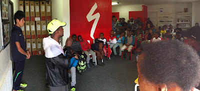 One of the songo.info program’s biggest success stories, Theo Ngubane, an articulate 20-year-old who represented South Africa in 2013 as its first black athlete ever to compete in the Downhill World Championships, asked Thugwane how it felt to compete at the Olympics and listened with rapt attention as Thugwane described his experience of rising from nothing to beat the world’s best. Afterwards Ngubane spoke to Thugwane and Kawauchi about his ambition to become a cycle designer and start his own company to produce world-class racing bikes within his community if he can find a design program that will take him.
