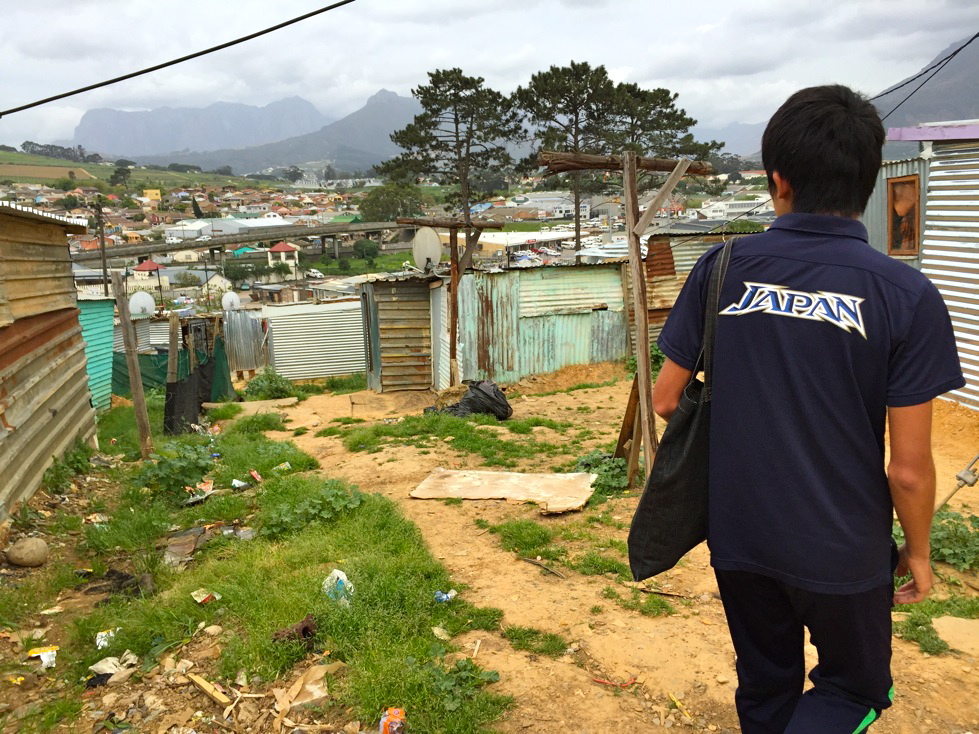 A community with over 100 years of history, the 33,000 residents of Kayamandi live in extreme conditions of poverty in the hills overlooking the wealthy winery town of Stellenbosch. Thugwane and Kawauchi were taken on a walking tour of the community to see with their own eyes the situation in which the songo.info program's children live and the challenges they face.