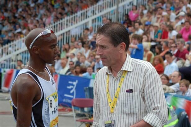 Stewart pictured here with double Olympic Champion Mo Farah ©UKA Athletics