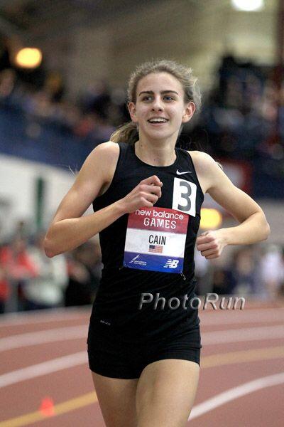 Cain finished second to Katie Mackey by only two-hundredths of a second as Mackey crossed the line in 4:04.60. The race saw six athletes dip under the previous meet and stadium record of 4:05.92 held by Shannon Rowbury. Cain and Mackey were joined by Nicole Sifuentes and Sarah Brown to dip under the World Championships A standard of 4:05.30.
