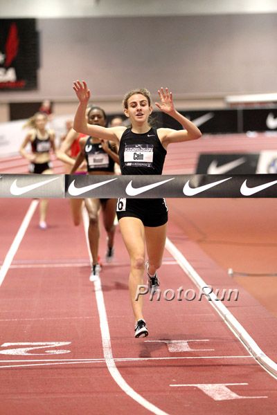 Cain continued her dominant indoor season as she won her first USA Indoor title at only 16-years-old. Cain ran with the front of the pack and made her move with a lap and a half remaining and bolted at the bell-lap to open a one second gap over her competitors. Cain broke the tape in 5:05.68, with Treniere Moser in second in 5:06.55. The last athlete to win a U.S. Indoor title while in high school was Allyson Felix in 2003.