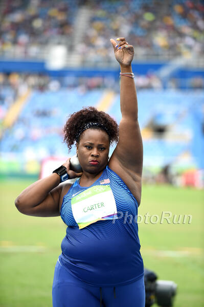 Voted Olympic Team captain by her teammates earlier this week, Carter posted her third major, last-throw victory in 2016. She also won the World Indoor title in March and the Olympic Trials crown in July on her final attempt.